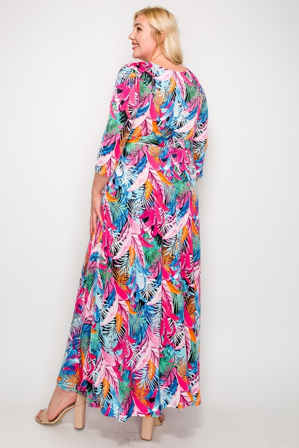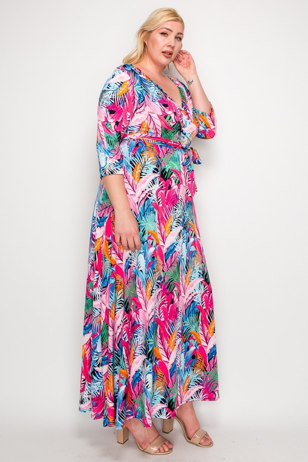 Venechia print 3/4 sleeve maxi wrap dress, 95% Polyester 5% Spandex
