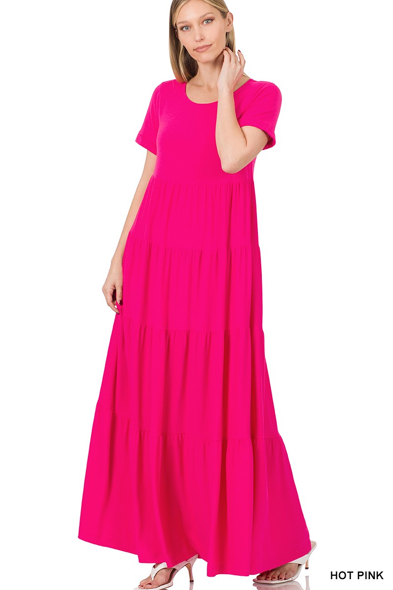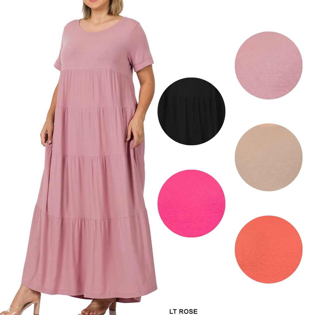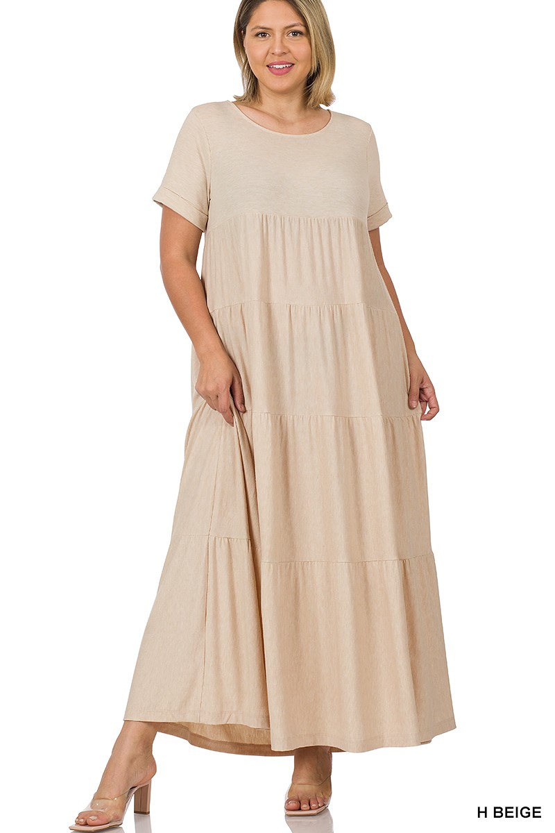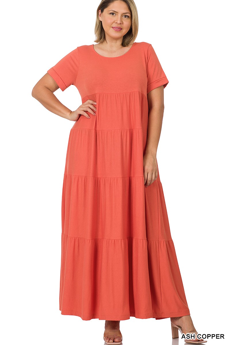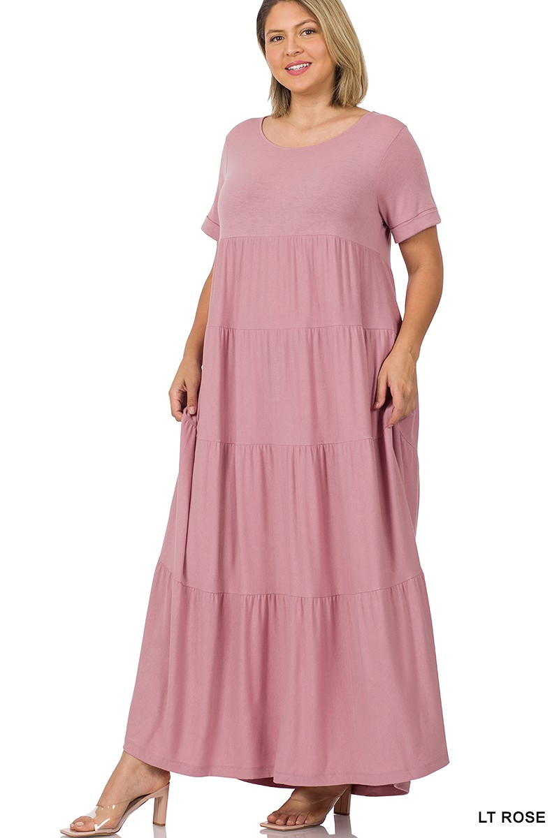 PLUS SHORT SLEEVE TIERED MAXI DRESS